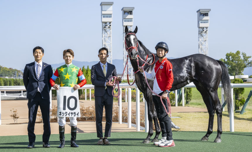 馬主の犬塚 悠治郎様、生産者のメイタイファーム様、松山弘平騎手、ありがとうございました。