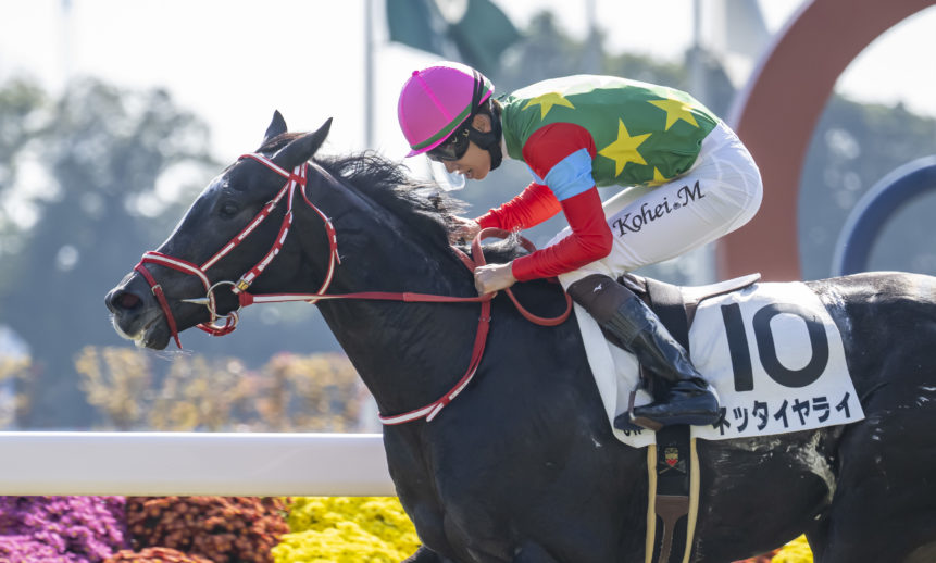 11月8日、京都3R 2歳未勝利 芝1800mで、ネッタイヤライ(牡2、父コントレイル、母サンライズシェル)が勝利しました。