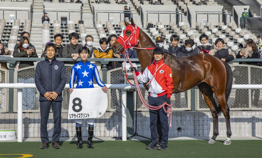 1月17日、京都1R 3歳未勝利戦 ダート1800mで、リアライズグリント(牡3、父キタサンブラック、母マドラスチェック)が勝利しました。