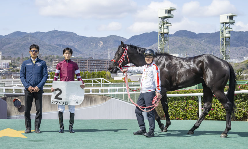 3月7日、阪神4R 3歳未勝利戦 芝2400mで、カットソロ(牡3、父コントレイル、母スルターナ)が勝利しました。